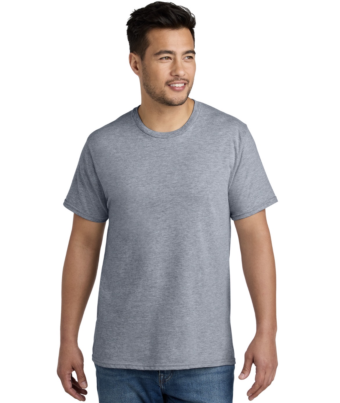 A budget-friendly choice, this remarkably soft tee is created from a CVC blend for an eye-catching texture.